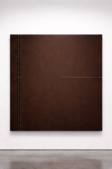 Segno, materia, linguaggio e silenzio definiscono, su superfici, campi di tensione e di equilibrio. Uno spazio non stabile, tra gestuale e concettuale, in cui elementi ricorrenti, lettere, numeri, linee, cavi e tracce grafiche, agiscono come indicatori simbolici.